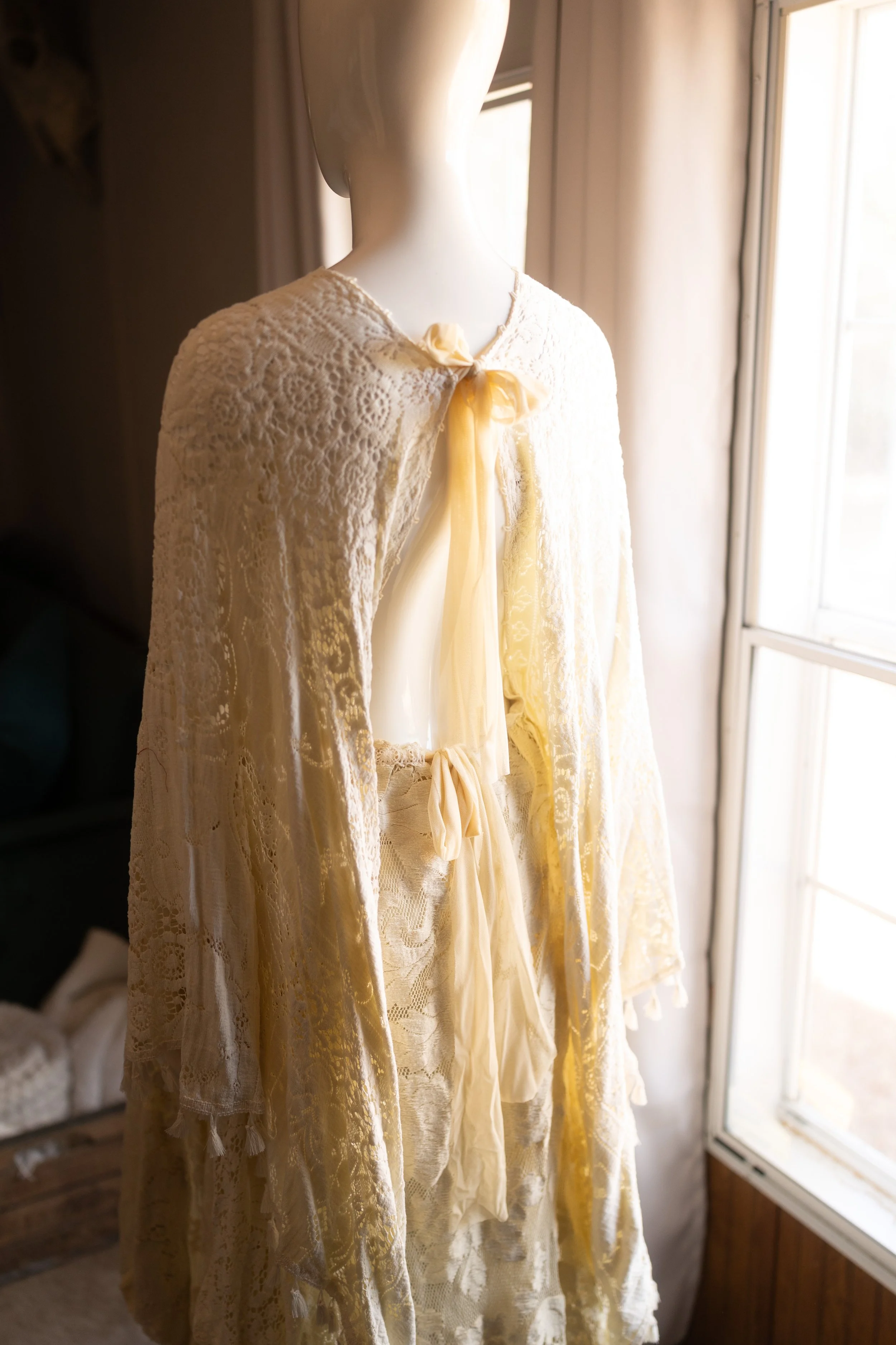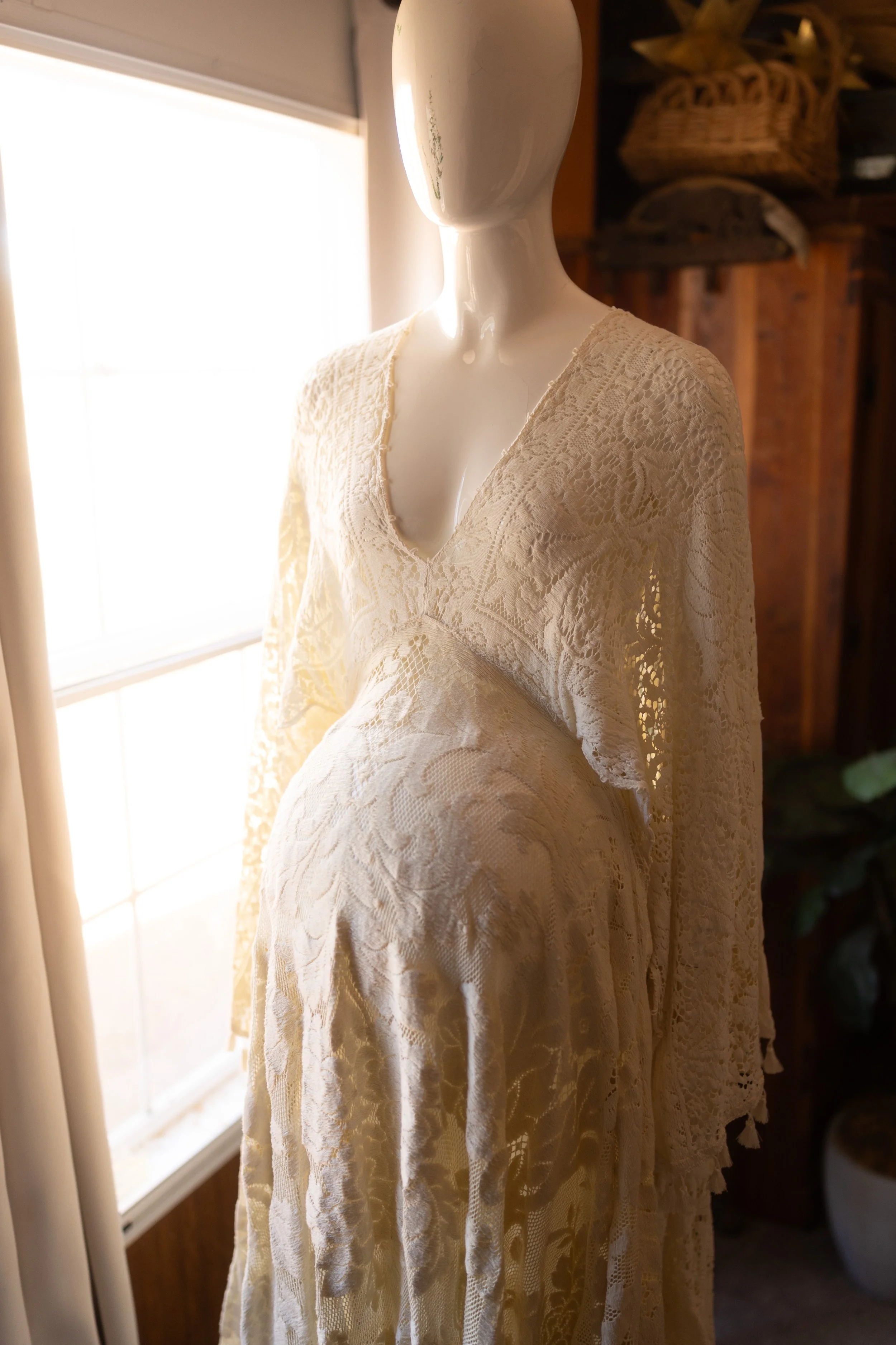 This dress is quietly beautiful — soft, feminine, and effortlessly romantic. The delicate lace and flowing layers create a gentle silhouette that moves naturally with you, while subtle details and adjustable ties keep it comfortable and easy to wear. It’s the kind of piece that doesn’t need to be styled or posed, making it perfect for intimate moments, natural light, and clients drawn to a timeless, understated elegance.